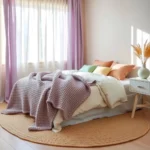 Мягкая мебель с обивкой из натуральных, тактильно приятных тканей – льна, хлопка, рогожки, вельвета или даже небольшого добавления шерсти – будет прекрасно сочетаться с занавесками из аналогичных материалов, создавая ощущение единства текстиля. Избегайте слишком большого совпадения цветов и узоров между мебелью и занавесками, чтобы интерьер не выглядел монотонным, скучным и безжизненным. Лучше использовать разные оттенки одного цвета или сочетать однотонные занавески с узорчатой обивкой мебели и наоборот. Это создаст динамику и позволит каждому элементу “дышать”.