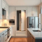 - Цвет: Нейтральные цвета (белый, серый, черный), металлические оттенки (хром, никель), иногда яркие, но чистые цвета в качестве акцента.